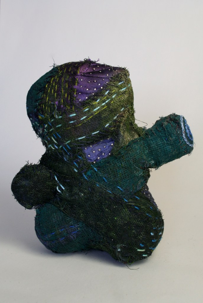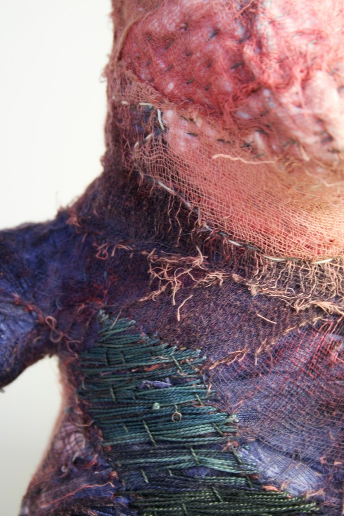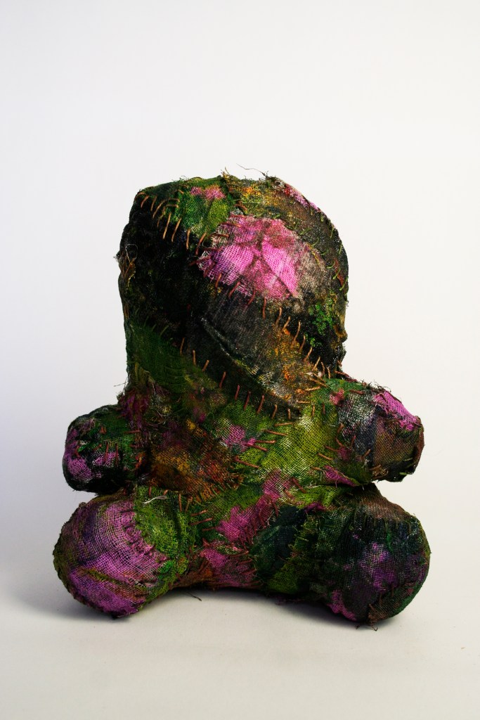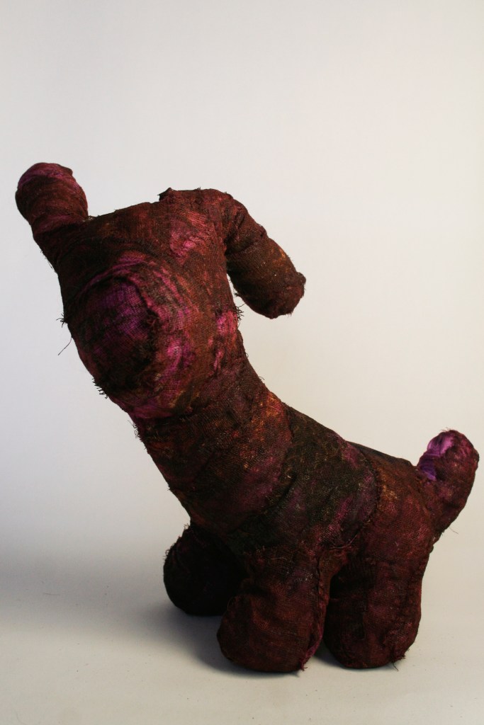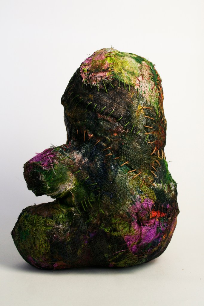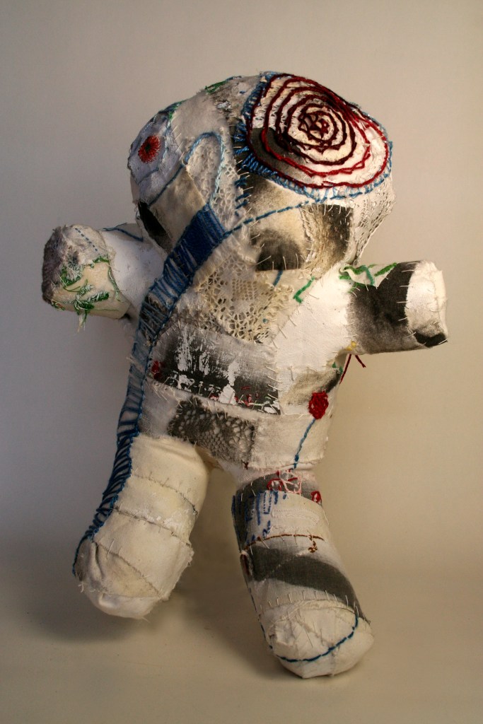These textile sculptures consist of several layers, and the work builds up from embroidering and dyeing cycles. The working process itself is like a ritual: used objects , broken toys, change shape and are born into another creatures. X-ray images of the works reveal their structure and hidden secrets .
