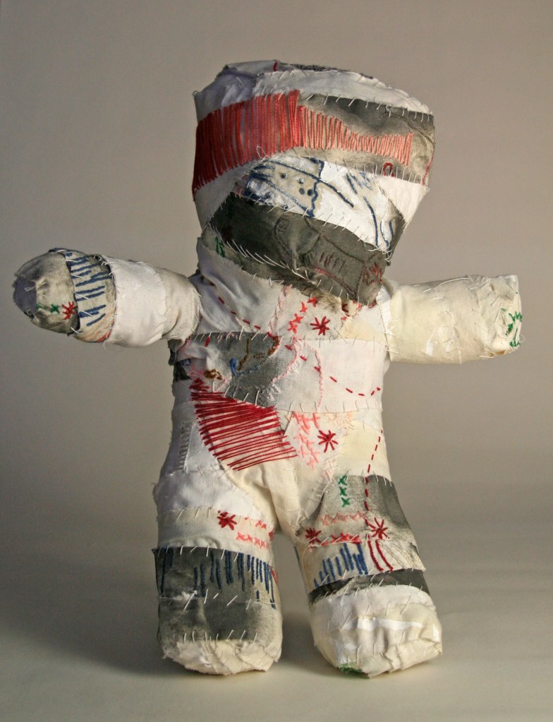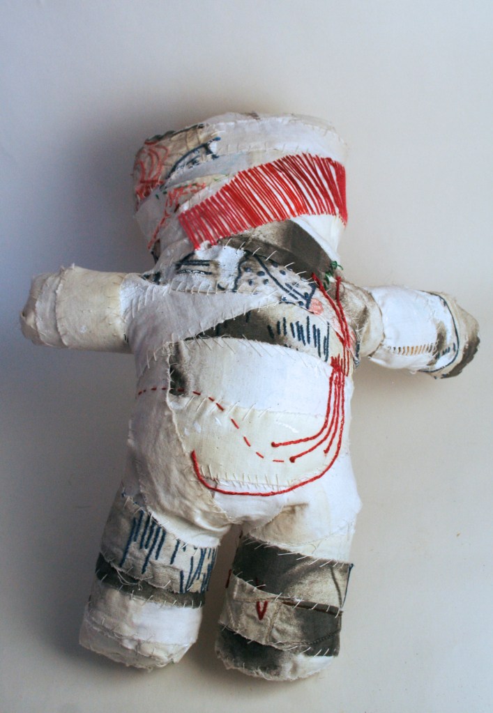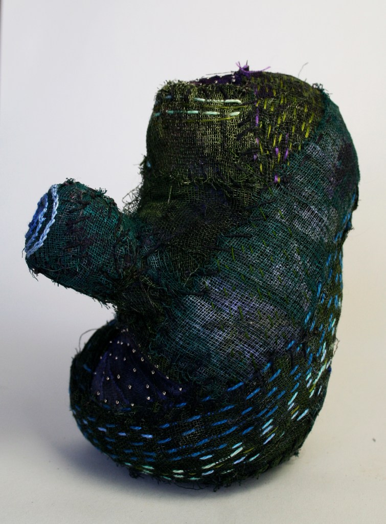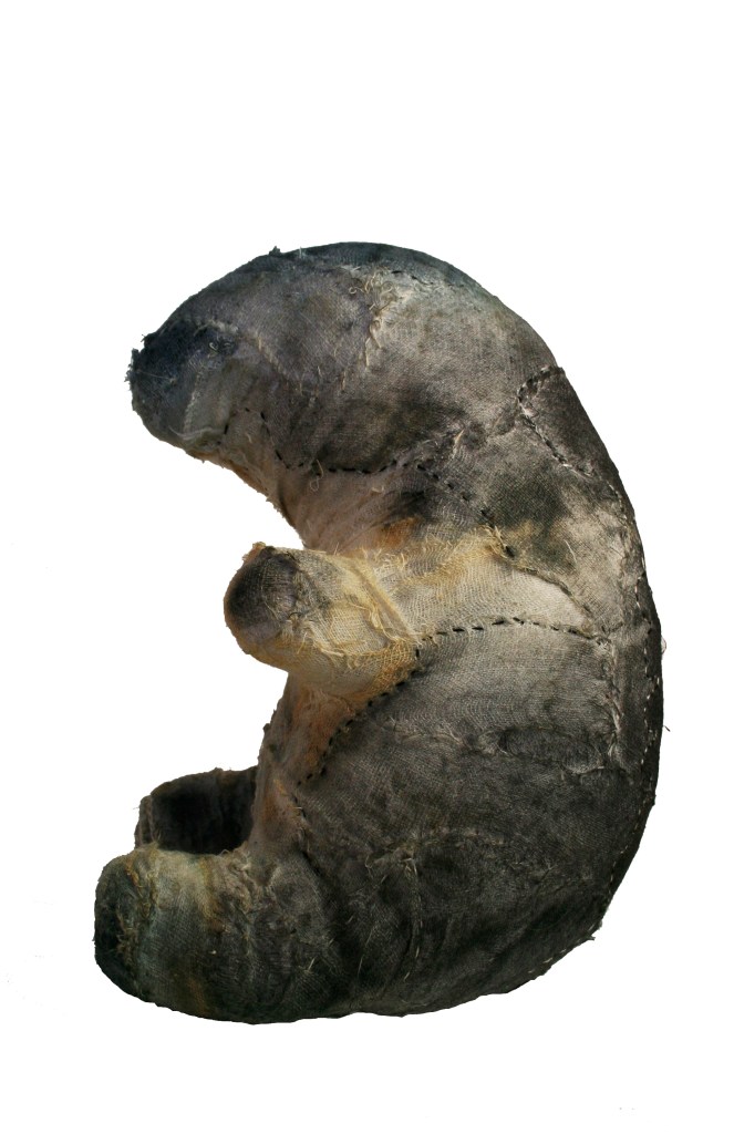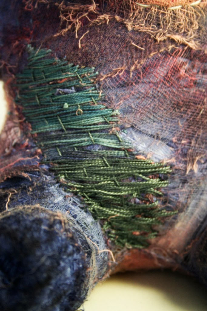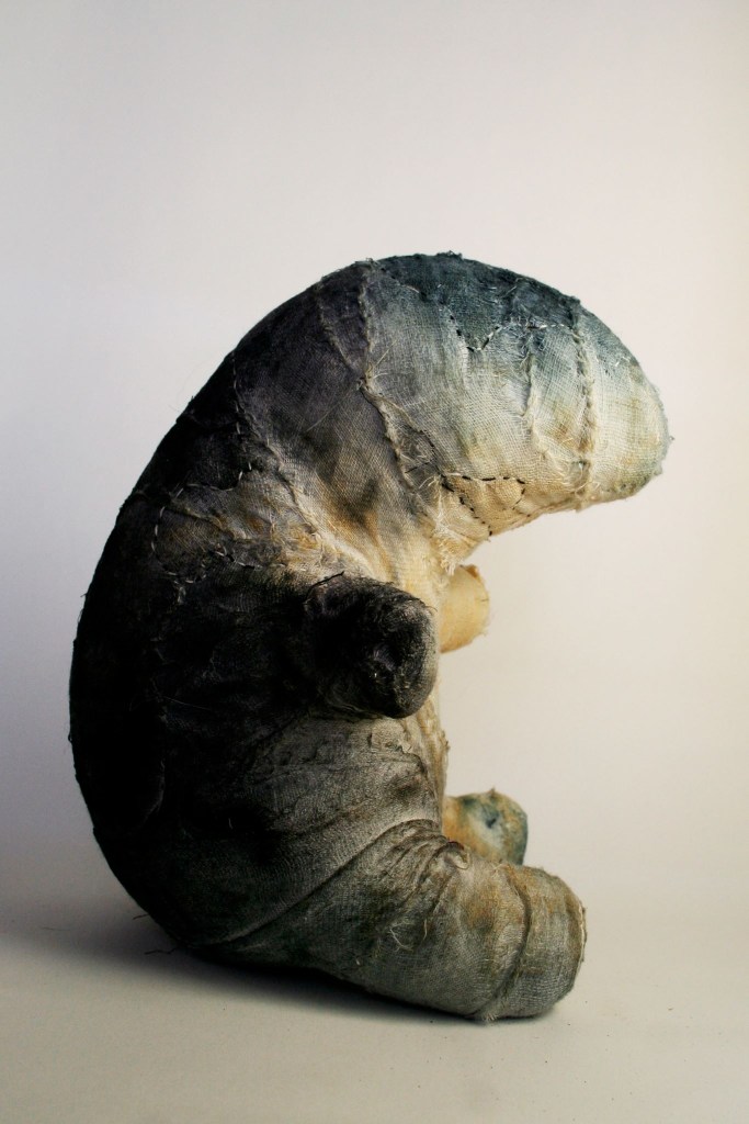 These textile sculptures consist of several layers, and the work builds up from embroidering and dyeing cycles. The working process itself is like a ritual: used objects , broken toys, change shape and are born into another creatures. X-ray images of the works reveal their structure and hidden secrets .