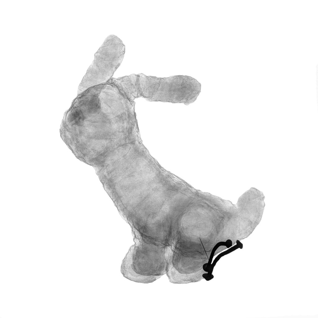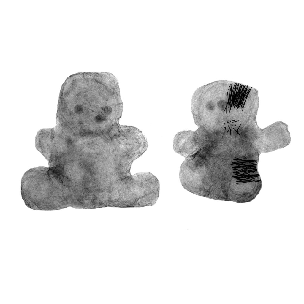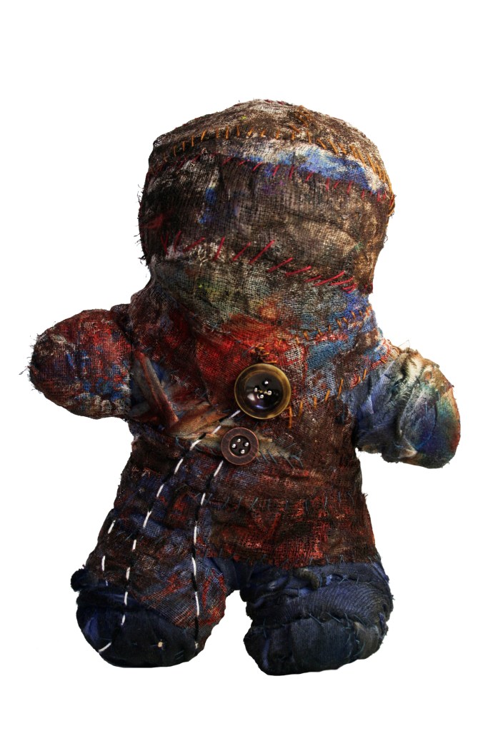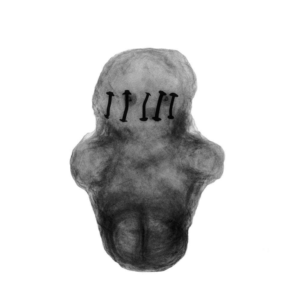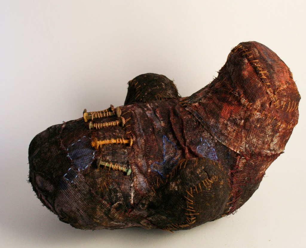 These textile sculptures consist of several layers, and the work builds up from embroidering and dyeing cycles. The working process itself is like a ritual: used objects , broken toys, change shape and are born into another creatures. X-ray images of the works reveal their structure and hidden secrets .